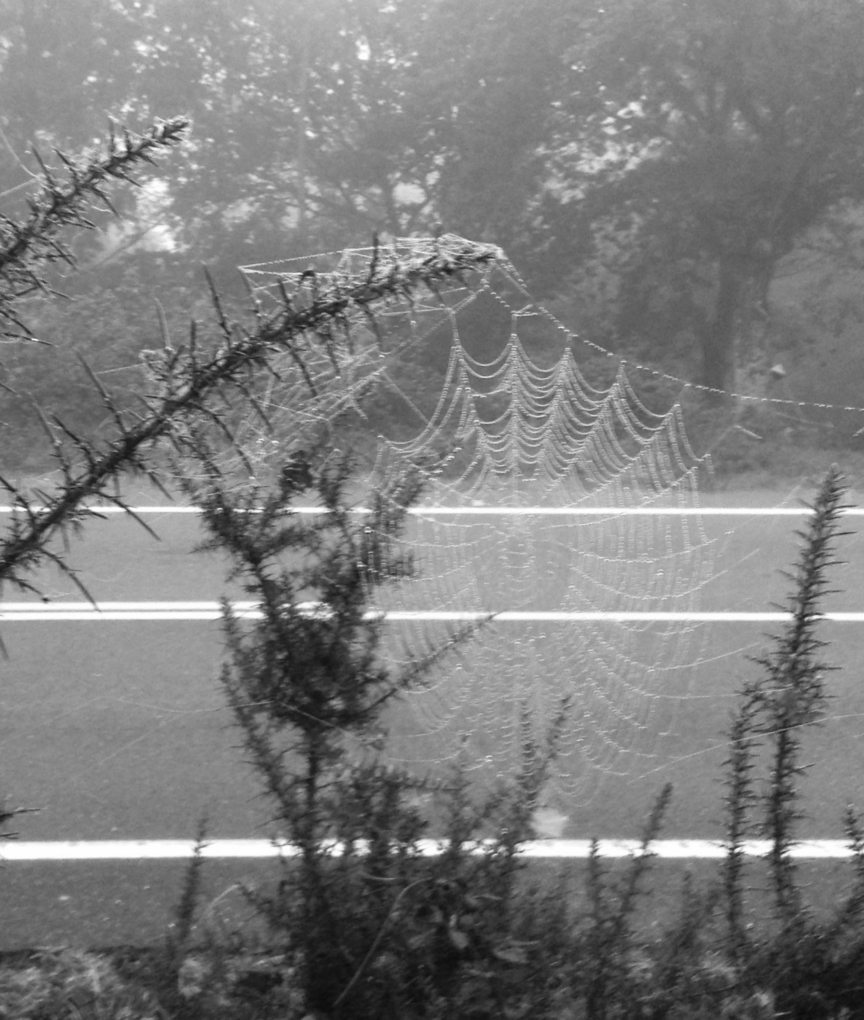 An intricate spiders web at the side of path.